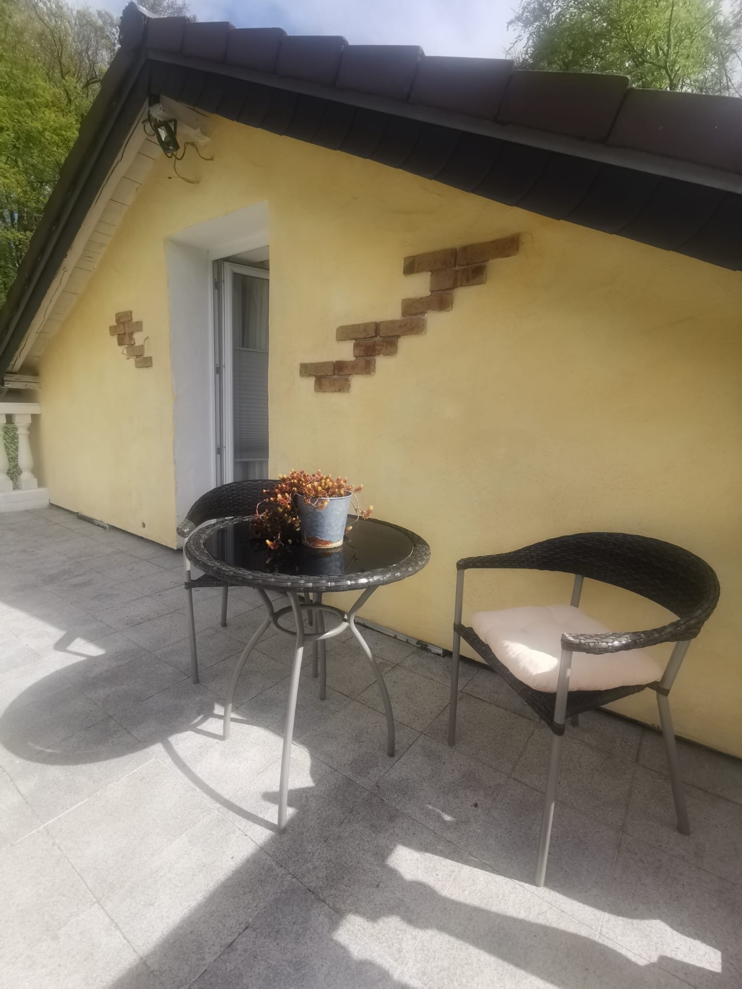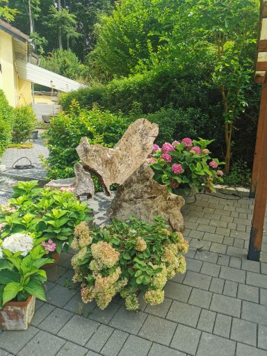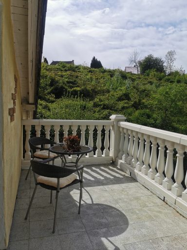 Auf Ihrem Balkon mit Sonnenschirm können Sie den wunderbaren Ausblick ins Liedbachtal und in unseren Garten genießen.