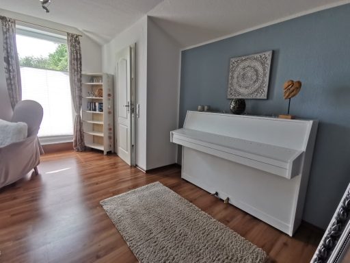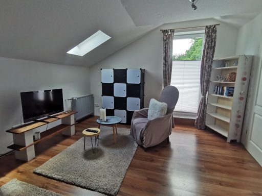 Ihr Schlafzimmer befindet sich im Obergeschoss und verfügt über ein Doppelbett (180 x 200 cm). Hier finden Sie auch den Zugang zu Ihrem Balkon. Für Ihre ganz Kleinen können wir gern eine gesonderte Übernachtungsmöglichkeit schaffen. Es besteht die Möglichkeit, den Raum abzudunkeln und es steht ein weiterer Fernsehr zur Verfügung.